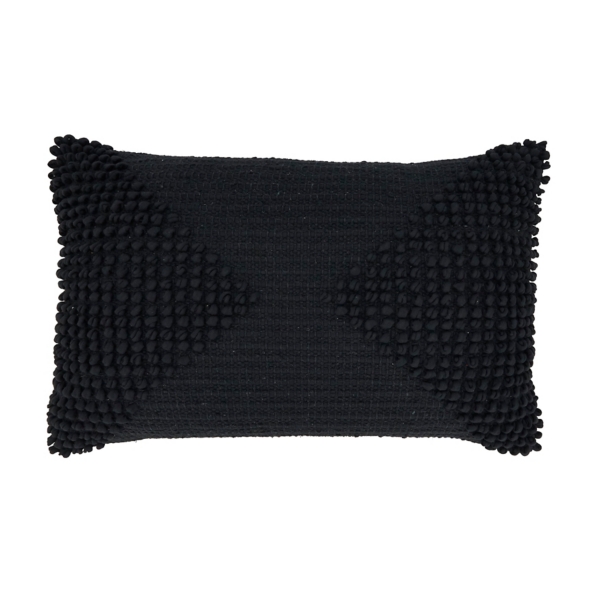 Add a modern touch to your space with this Black Textured Woven Diamond Lumbar Pillow! The look and texture of the woven diamonds is perfect for effortlessly elevating your space! Pillow measures 22L x 14H in. Crafted of cotton with polyfill insert Woven diamond fabric design Black finish Solid black reverse Hidden zipper closure Care: Spot clean. This item is available at Kirklands.com only, not available in stores. Please note: this item cannot be shipped to APO/FPO addresses.