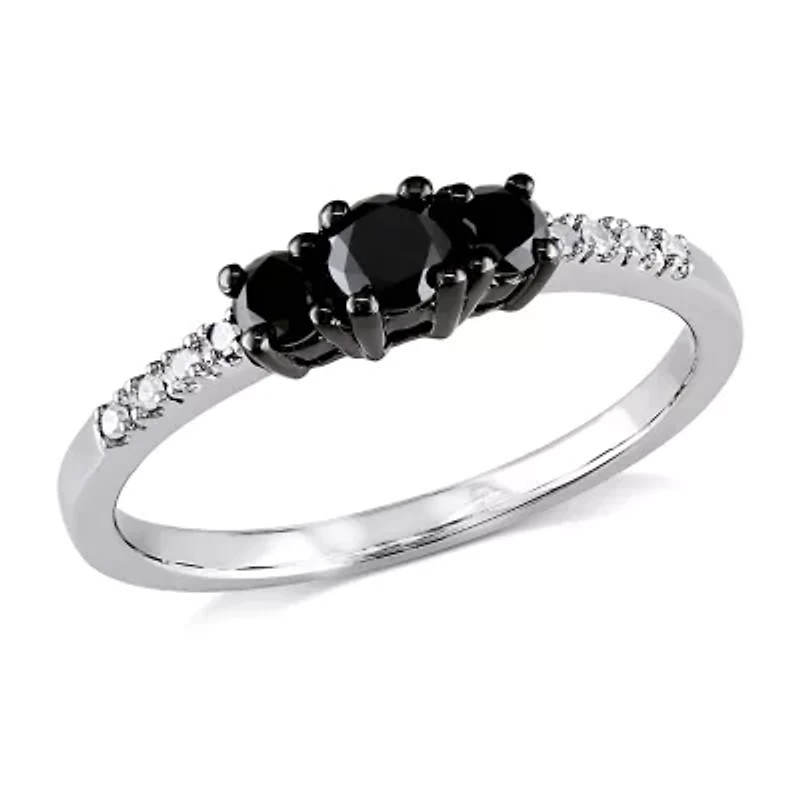 Black & White Diamond 3 Stone Ring 10k Gold