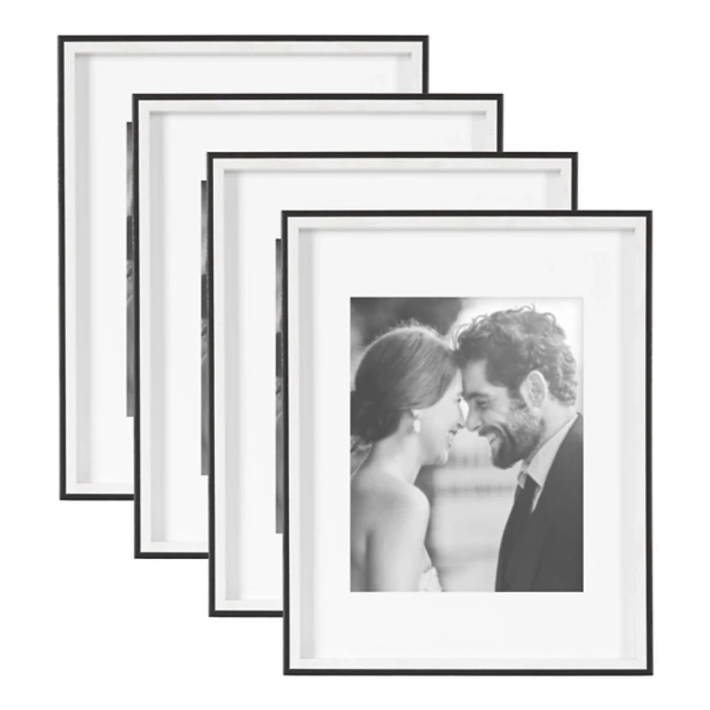 Celebrate your most treasured memories and perfectly preserve them for years to come with this Black & White Gibson 4-pc. Gallery Wall Frame Set. It will create a stunning display in any room! Set includes four (4) picture frames Each frame measures Width: 11.75 in. Depth: 1.18 in. Height: 14.75 in. Crafted of wood, paper, and glass Black and white frame finish Accommodates four (4) 8x10 photos Feature white matting Weight: 8.8 lbs. each Hangs from back-mounted hardware Care: Dust with a soft, dry cloth. This item is available at Kirklands.com only, not available in stores. Please note: this item cannot be shipped to APO/FPO addresses.