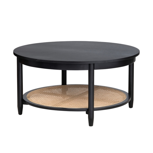Modernize your coastal-inspired living room with the Black Wood and Rattan Boho Coffee Table. Crafted with mindi wood and natural rattan, this table flaunts an organic appeal. Table measures 18H x 36 in. in diameter Crafted with a mindi wood and plywood frame Black finish Accented with a rattan shelf in natural finish Round shape Weight: 19 lbs. Assembly required Not intended for commercial use Care: Dust with a soft, dry cloth. This item is available at Kirklands.com only, not available in stores. Please note: this item cannot be shipped to APO/FPO addresses. WARNING: Cancer and Reproductive Harm - For more information go to www.P65Warnings.ca.gov .