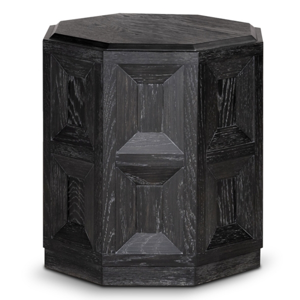 Add depth and elegance to the side of your couch with our Black Wood Weathered Flonnin Accent Table. You’ll love its unique geometric look with your modern décor. Overall dimensions Width: 20 in. Depth: 20 in. Height: 22 in. Crafted of solid wood Black weathered finish Features a sunken panel design Geometric octagon shape Assembly required Not intended for commercial use Care: Dust with a soft, dry cloth. This item is available at Kirklands.com only, not available in stores. Please note: this item cannot be shipped to APO/FPO addresses. WARNING: Cancer and Reproductive Harm - For more information go to www.P65Warnings.ca.gov .