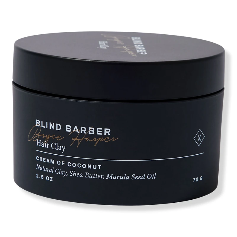BRYCE HARPER STYLING CLAY 2.5OZ. Benefits: Strong Hold. Matte Finish. Cream of Coconut Fragrance. Water Soluble - Rinses out with ease. Kaolin Clay adds volume by soaking up dirt and impurities. Enhanced with: Shea Butter and Marula Seed Oil. Paraben and Sulfate-Free. Key Ingredients: Coconut provides a light coconut fragrance with hints of vanilla. Kaolin Clay is a natural clay that helps absorb excess oil and moisture. Marula Seed Oil is a multipurpose oil that conditions the hair and helps soothe and moisturize the scalp. Shea Butter conditions the hair and scalp, softens hair and helps soothe scalp irritation. :