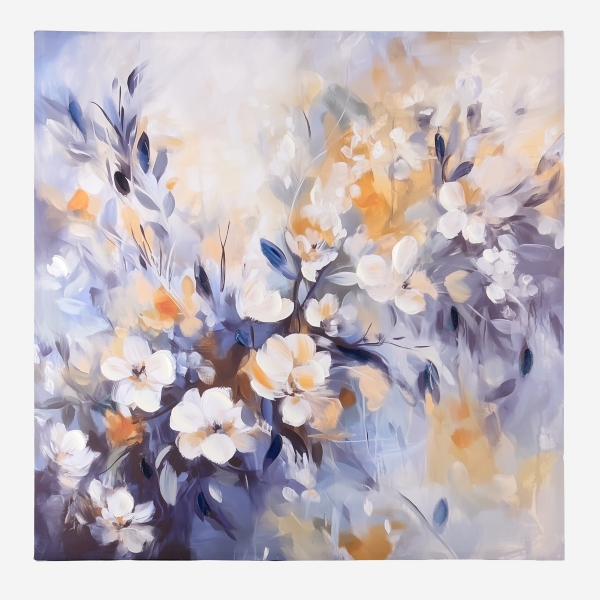 Refresh your wall decor with this Blue Abstract Floral Canvas Art Print. With its compelling, abstract blooms, it will add a bold and beautiful touch to your space! Overall dimensions Width: 40 in. Depth: 1.5 in. Height: 40 in. Distinctively printed on stretched canvas Wrapped edges complete the look Features an abstract floral subject Hues of blue, white, and orange Print with hand painted embellishments Weight: 4.85 lbs. Hangs from back-mounted hardware Care: Dust with a soft, dry cloth. Contact your local Kirkland's store for availability. Quantities and selection may vary by location.