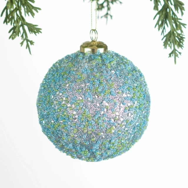 Blue and Green Glitter Christmas Ornament, 4 in.
