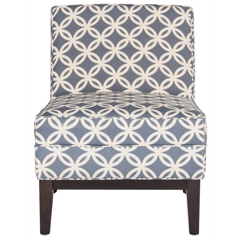 Refresh your living room with a stylish statement piece! The Blue Catherine Contemporary Accent Chair will bring bold, modern flair and great comfort to any reading nook. Overall dimensions Width: 31.8 in. Depth: 25.1 in. Height: 33 in. Seat height measures 18.1 in. Crafted of viscose, linen, and wood High-density foam fill Upholstered in a blue geometric pattern fabric Espresso leg finish Weight: 29.7 lbs. Weight capacity: 275 lbs. Assembly required Not intended for commercial use Care: Dust with a soft, dry cloth. This item is available at Kirklands.com only, not available in stores. Please note: this item cannot be shipped to APO/FPO addresses.