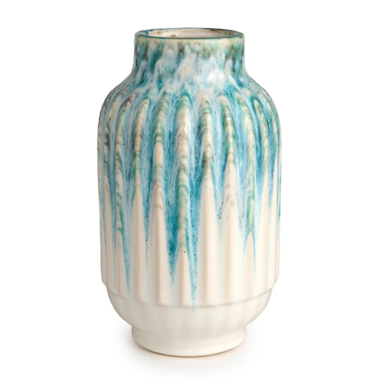 Blue Drip Glaze Ribbed Ceramic Vase
