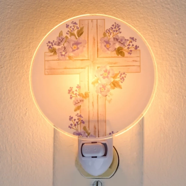 Blue Floral Cross Night Light