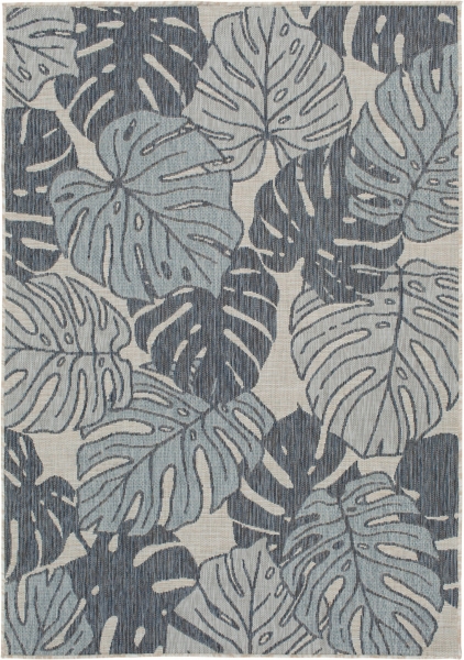 Blue Malibu Monstera Outdoor Area Rug, 7x9
