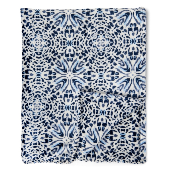 This Blue Medallion Velvet Throw instantly makes any space more warm and inviting. Its unique pattern will look stunning draped over your sofa or accent chair! Throw measures 50L x 60H in. Crafted of polyester Plush velvet texture Medallion pattern Hues of blue and white Care: Wash before use. Machine wash cold. Use on-chlorine bleach. Tumble dry low heat. Remove promptly. Do not iron. Contact your local Kirkland's store for availability. Quantities and selection may vary by location.