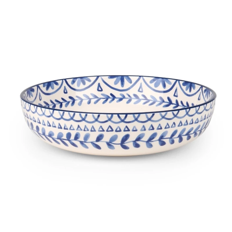 Our Blue Mosaic Ceramic Serving Bowl showcases a beautiful harmony of geometric shapes and curvy motifs. Make your dinner parties feel exquisite with this lovely, patterned serveware. Bowl measures 3.3H x 12 in. in diameter Holds up to 126 oz. Crafted of ceramic Mosaic design Hues of blue and white Food and microwave safe Care: Dishwasher safe. Contact your local Kirkland's store for availability. Quantities and selection may vary by location.