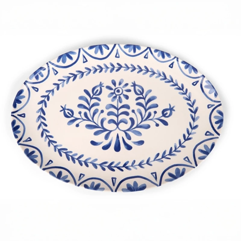 Our Blue Mosaic Ceramic Serving Platter showcases a beautiful harmony of geometric shapes and curvy motifs. Make your dinner parties feel exquisite with this lovely, patterned serveware. Platter measures 16.1L x 11.5W x 1.2H in. Crafted of ceramic Mosaic design Hues of blue and white Food and microwave safe Care: Dishwasher safe. Contact your local Kirkland's store for availability. Quantities and selection may vary by location.