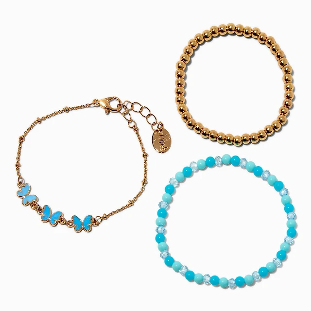Blue Ombré Butterfly Bracelet Set - 3 Pack