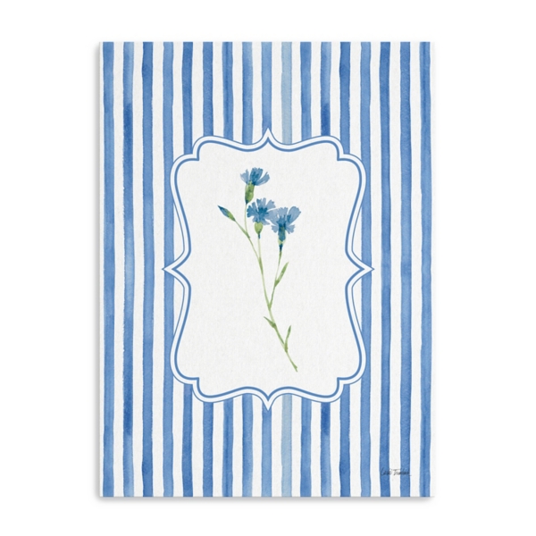 Put a fresh, floral charm on your space with this Blue Spring Silo I Canvas Art Print. Accented with bold blue stripes, it's sure to stand out on any wall! Overall dimensions Width: 18 in. Depth: 1.25 in. Height: 24 in. Distinctively printed on stretched canvas Wrapped edges complete the look Features a floral subject Hues of blue, white, and green Artist: Leslie Trimbach Weight: 1.87 lbs. Hangs from back-mounted hardware Care: Dust with a soft, dry cloth. Avoid exposure to heat, sunlight, and moisture. This item is available at Kirklands.com only, not available in stores. Please note: this item cannot be shipped to APO/FPO addresses.