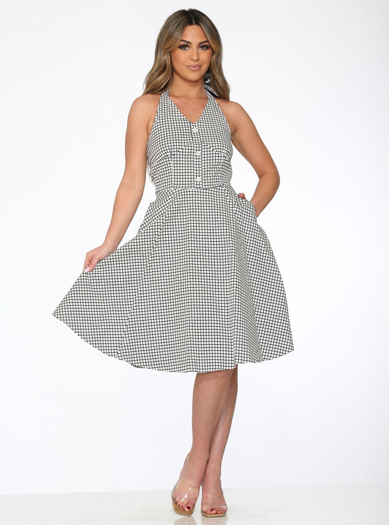 White Black Gingham Halter Dress
