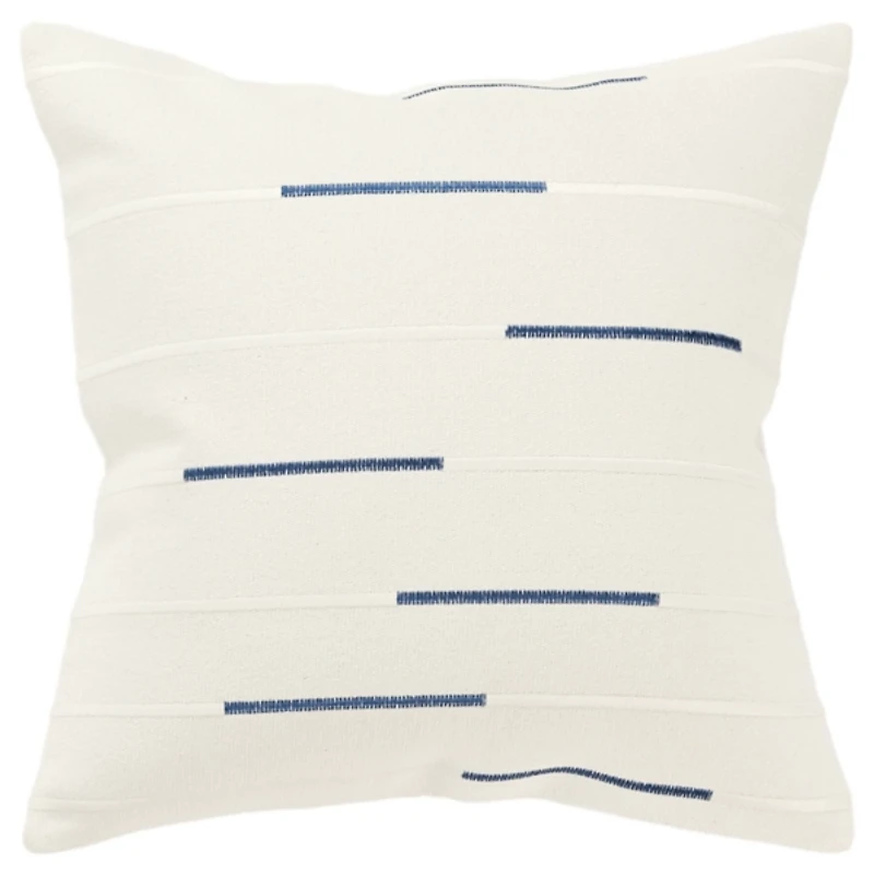Get cozy with our Blue Woven Lines throw Pillow! It's the perfect accent pillow that will look great with a variety of décor styles, from contemporary to traditional! Pillow measures 20L x 20H in. Crafted of cotton with polyester fill Features woven horizontal stripes with lines of color Accented by silver satin stitch embroidery Solid reverse Hues of blue and ivory Zipper closure Care: Spot clean. This item is available at Kirklands.com only, not available in stores. Please note: this item cannot be shipped to APO/FPO addresses.