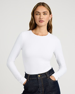 Smooth, sculpt, and define your figure with this crew neck long sleeve basic bodysuit. The tucked-in and polished look is great paired with pants, jeans, or a skirt.