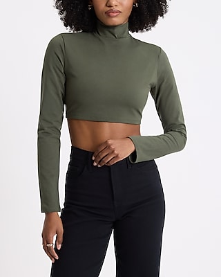 Body Contour Light Compression Stretch Cotton Turtleneck Long Sleeve Cropped Tee in Chattanooga, TN
