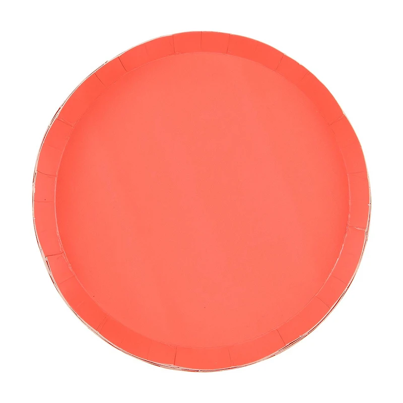 Elevate memorable moments with bold coral accents - our Boho Coral Round 8.25" Shallow Dessert Plates are great for adding warmth to your venue! This 8-count of 8.25-inch paper dessert plates is a great addition to baby showers, bridal parties, birthday celebrations, and other special events that could use a pop of vibrance. Featuring a bright coral color, these round disposable plates are shallow and perfect for serving up sweets and treats at your big event! Use these low profile printed plates to display at the dessert station, serve up birthday cake slices, or decorate place settings at party tables and combine with fun table decorations. Shop the entire collection of our colorful party supplies and party plates to throw parties that are anything but ordinary!