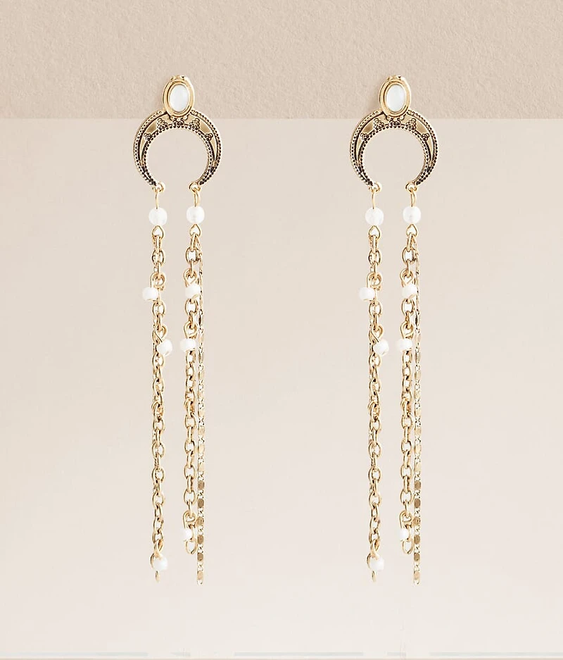Embossed metal and stone stud earring Length measures 4 1/2"