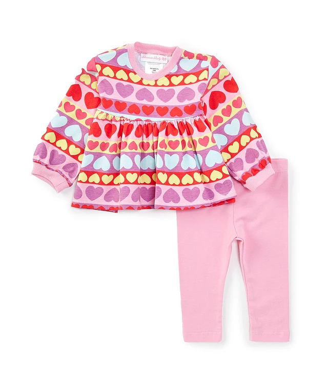 Bonnie Jean Baby Girls Newborn-24 Months Long-Sleeve Heart-Printed Fit-And-Flare Dress & Solid Leggings Set