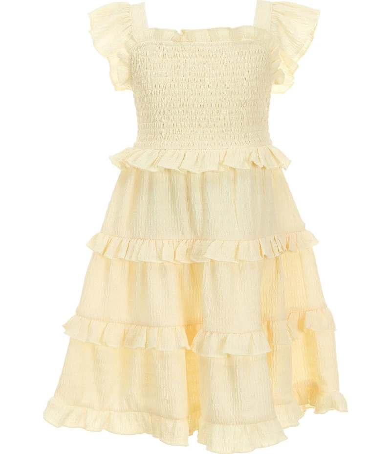 Bonnie Jean Big Girls Flutter-Sleeve Smocked-Bodice Ruffle-Tier Skirted Pucker-Knit Dress in Chattanooga, TN