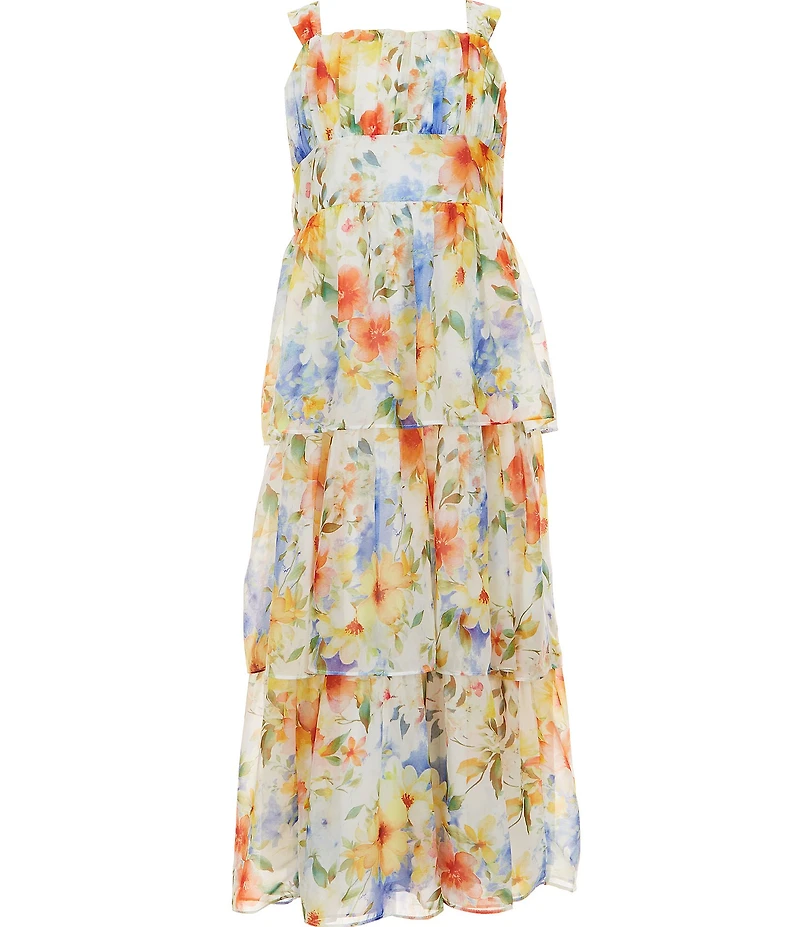 Bonnie Jean Big Girls Sleeveless Floral Chiffon Tiered Maxi Dress