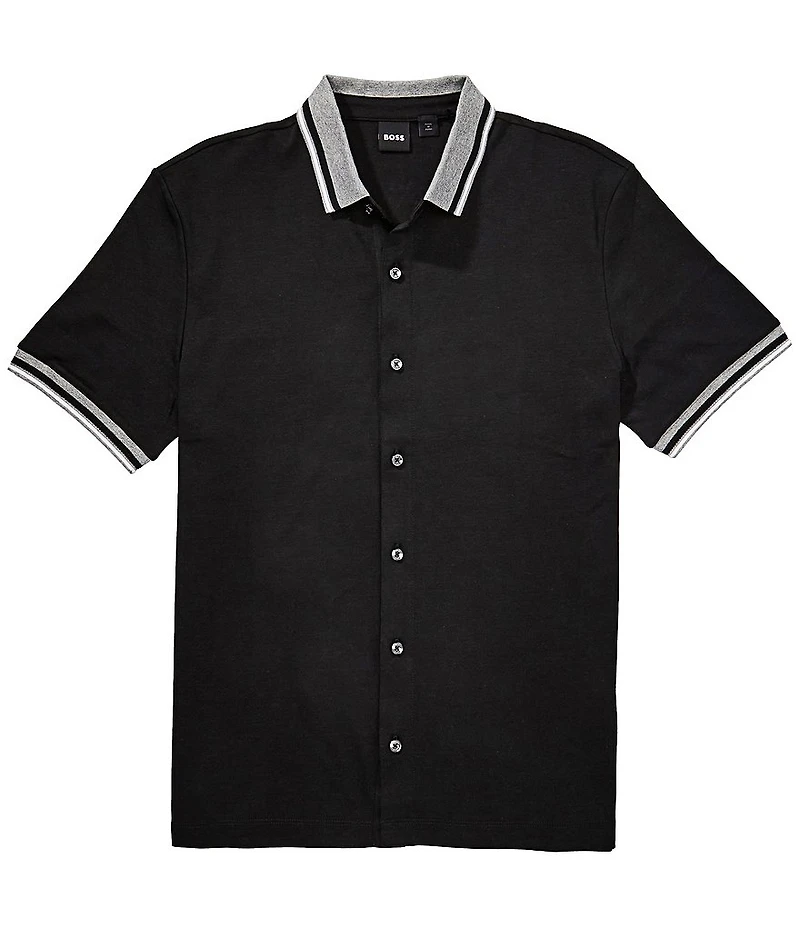 From BOSS, this shirt features: Solid tone Spread collar Short sleeves Tipping detail at collar and cuffs Button-front closure Regular fit Cotton Machine wash/tumble dry Imported.