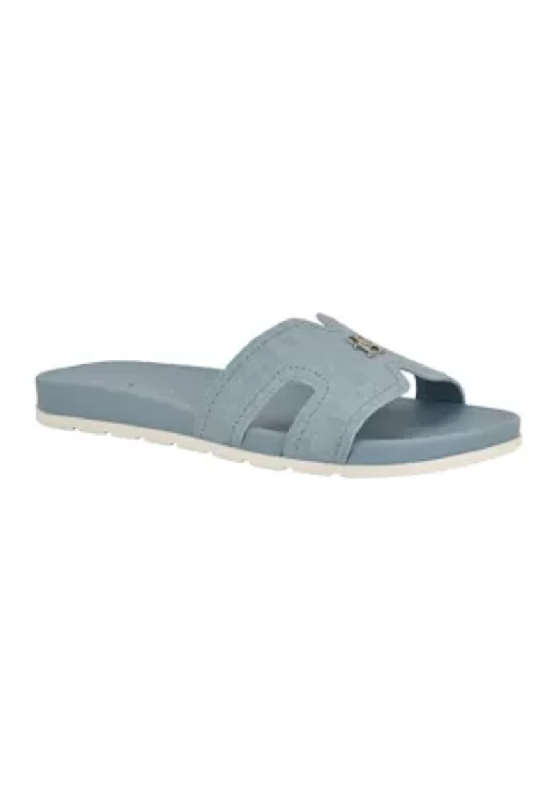 These fashionable Tommy Hilfiger sandals feature an easy slip-on design for a flattering fit, perfect for everyday wear. Slip-on Imported Product Specifications Medium width Material Faux leather