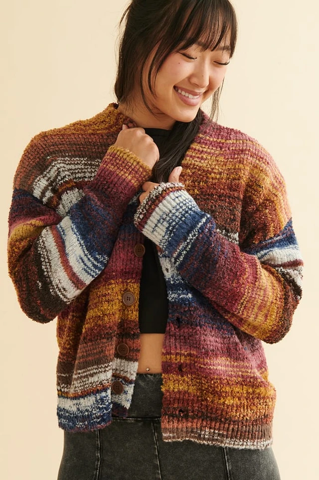 Buy Rainbow Striped Knit Button Cardigan Online at Earthbound Trading