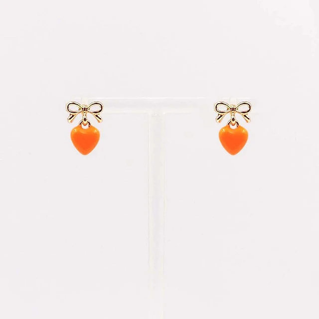 Gold Blue Coated Metal Bow Heart Drop Earrings