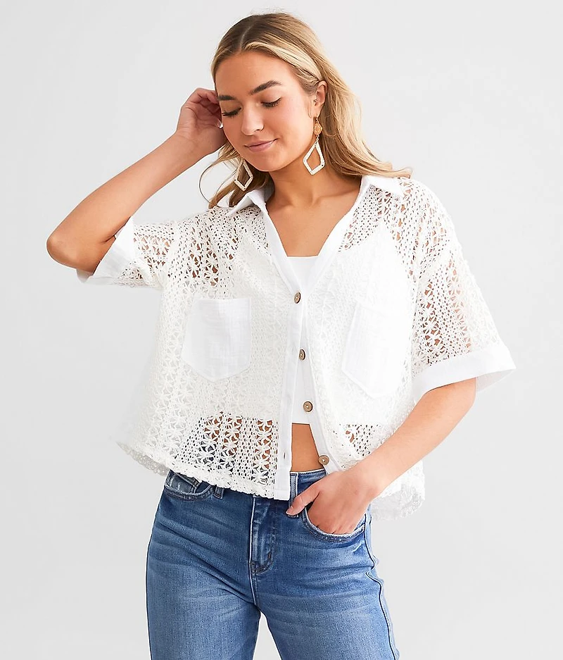 Open weave button down blouse Bust measures 44" on size small Body length 19" on size small