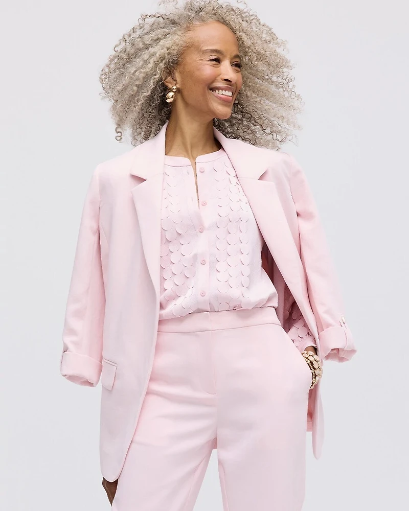 - Relaxed-fit, lined blazer with long, roll-tab sleeve blazer.