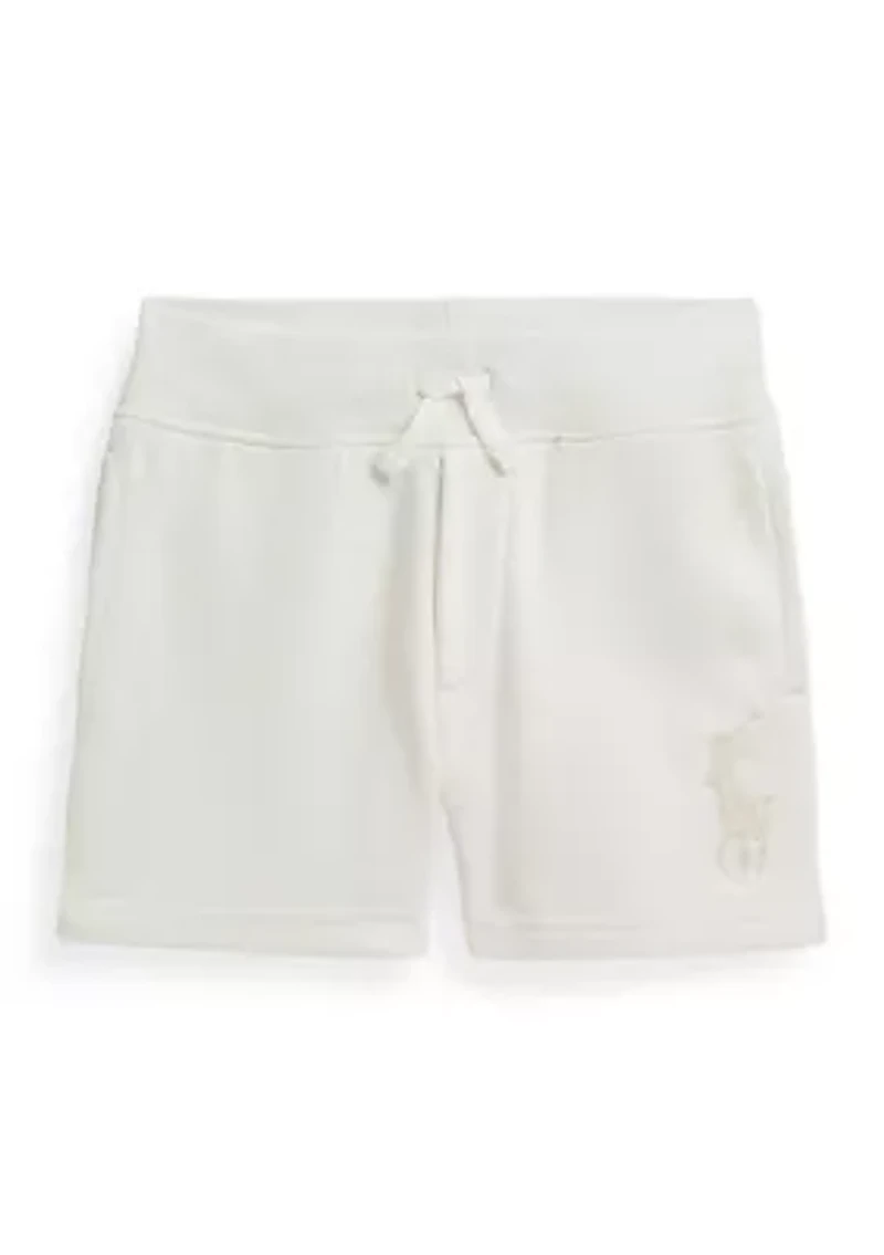 These drawstring shorts are made with cotton-blend French terry and then washed for additional softness. At the hem, Ralph Lauren Childrenswear's tonal signature Big Pony adds an iconic Polo finish. Faux fly Ribbed drawstring waistband Side on-seam pockets Imported Material & Care 87% cotton, 13% polyester (exclusive of decoration) Machine washable