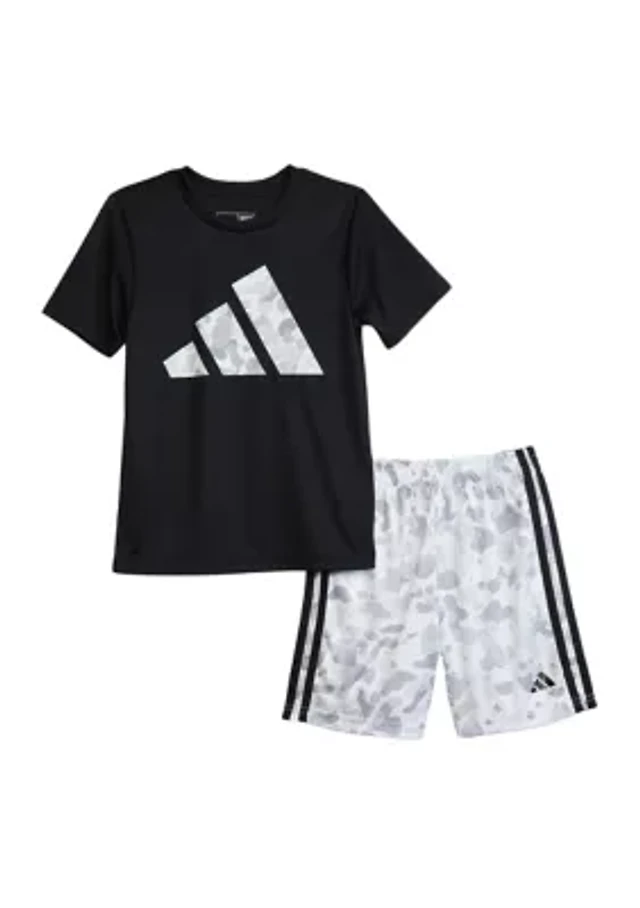 Boys 4-7 Two Piece Short Sleeve T-Shirt and Camo 3-Stripe Woven Shorts Set