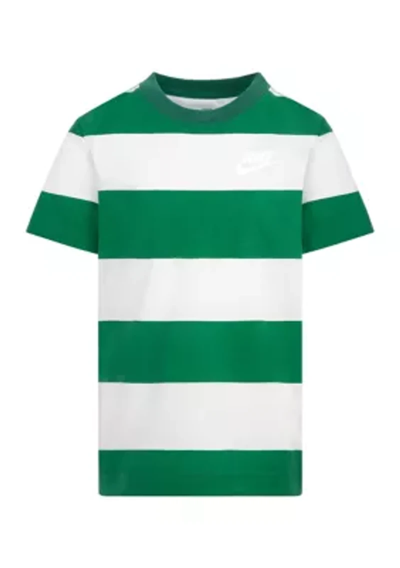 Updated with stripes for a bold contrast, this soft cotton-blend t-shirt from Nike® is a great choice for warm-weather adventures. Pullover Crew neck Short sleeves Imported Material & Care Cotton, polyester Machine washable
