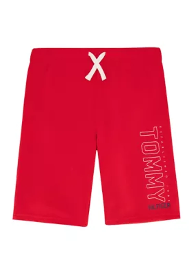 A classic Tommy Hilfiger graphic makes these shorts great for playtime. Drawstring elastic waistband Regular fit Straight leg Imported Material & Care Cotton, polyester Machine washable