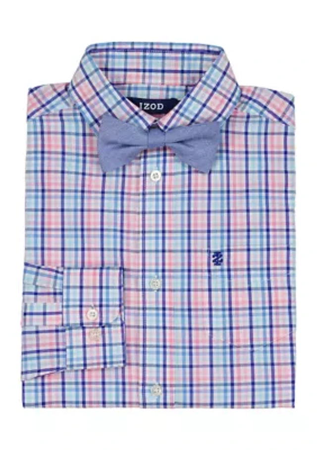 Boys 8-20 Long Sleeve Stretch Lambert Plaid Shirt & Bow Tie