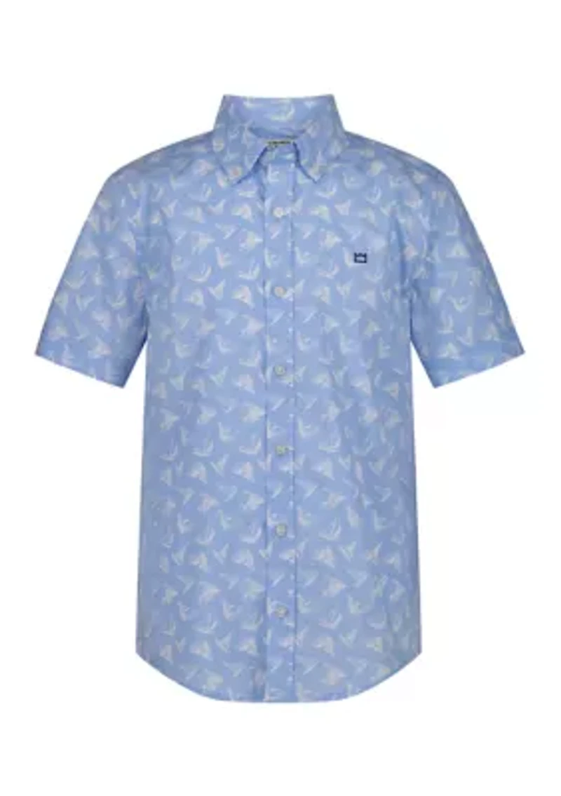 Boys 4-7 Sailboat Printed Short Sleeve Woven Shirt