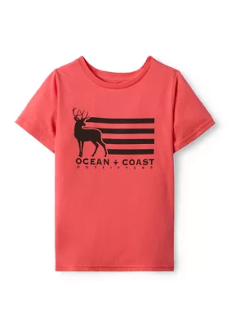 This comfortable tee from Ocean + Coast®, crafted from a soft cotton blend, is perfect for your little adventurer. He'll love to express his style with this versatile and durable shirt designed for easy wear and all-day play. Pullover Crew neck Short sleeves Imported Belk Exclusive Material & Care Cotton, polyester Machine washable