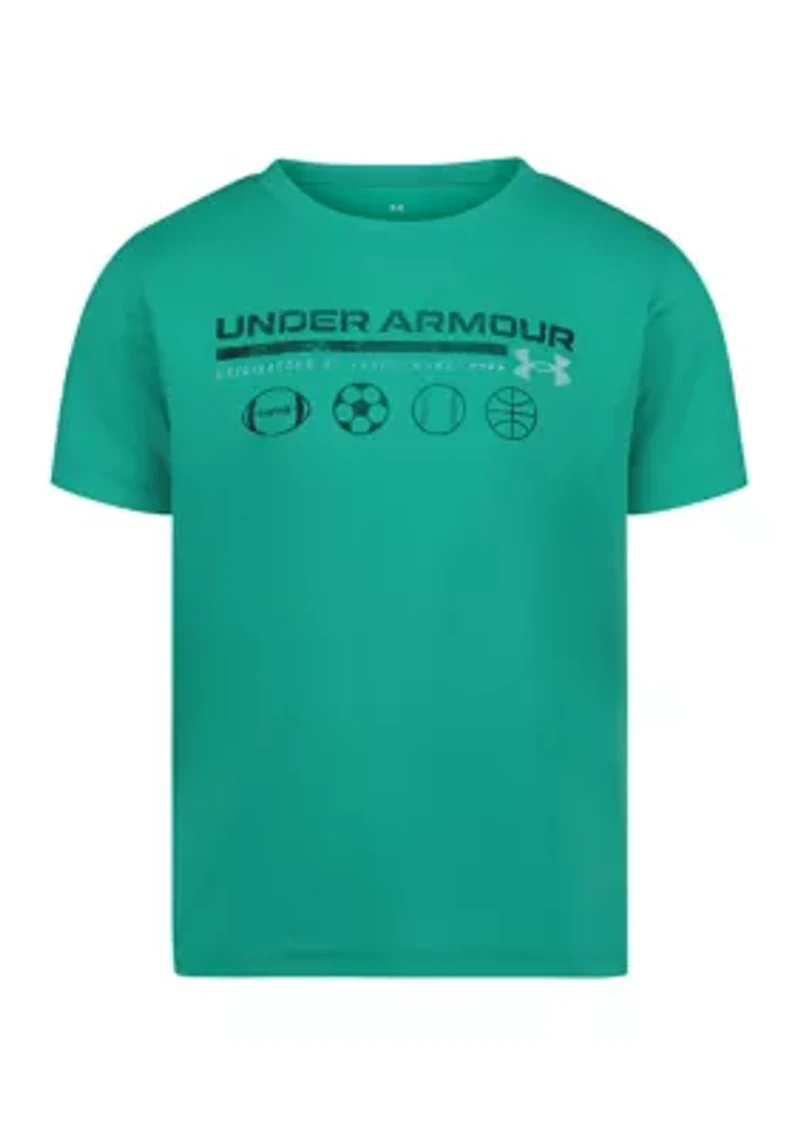 This Under Armour® t-shirt makes a stylish, versatile option for boys' everyday wear. UA Tech™ fabric is quick-drying, ultrasoft & has a more natural feel Smooth and lightweight for superior performance Short sleeve Screenprint logo graphics Crewneck, banded trim Tagless interior Material wicks sweat & dries really fast Imported Material & Care 100% polyester Machine washable