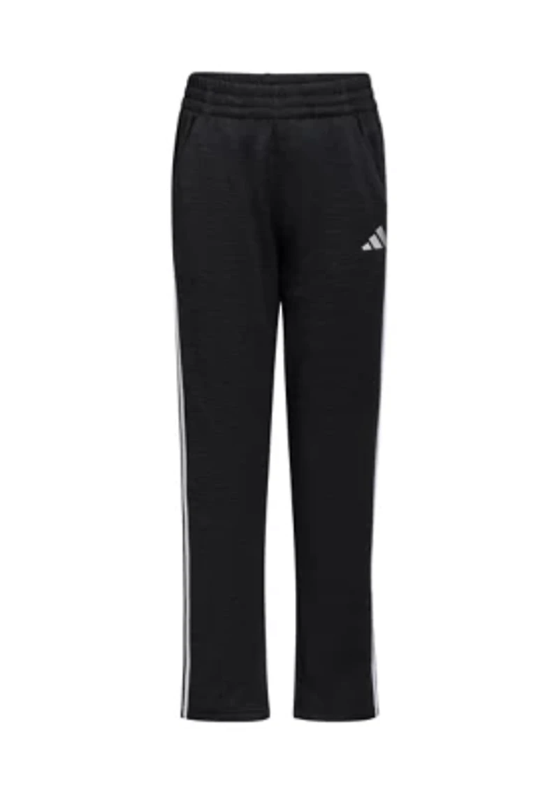 Soft fabrics combine with an elastic waistband to create these comfy game-and-go pants from adidas. Pair them with his favorite t-shirt for an adventure-ready look. Elastic waistband 2 front slant pockets Regular fit Tapered leg Imported Material & Care Polyester Machine washable