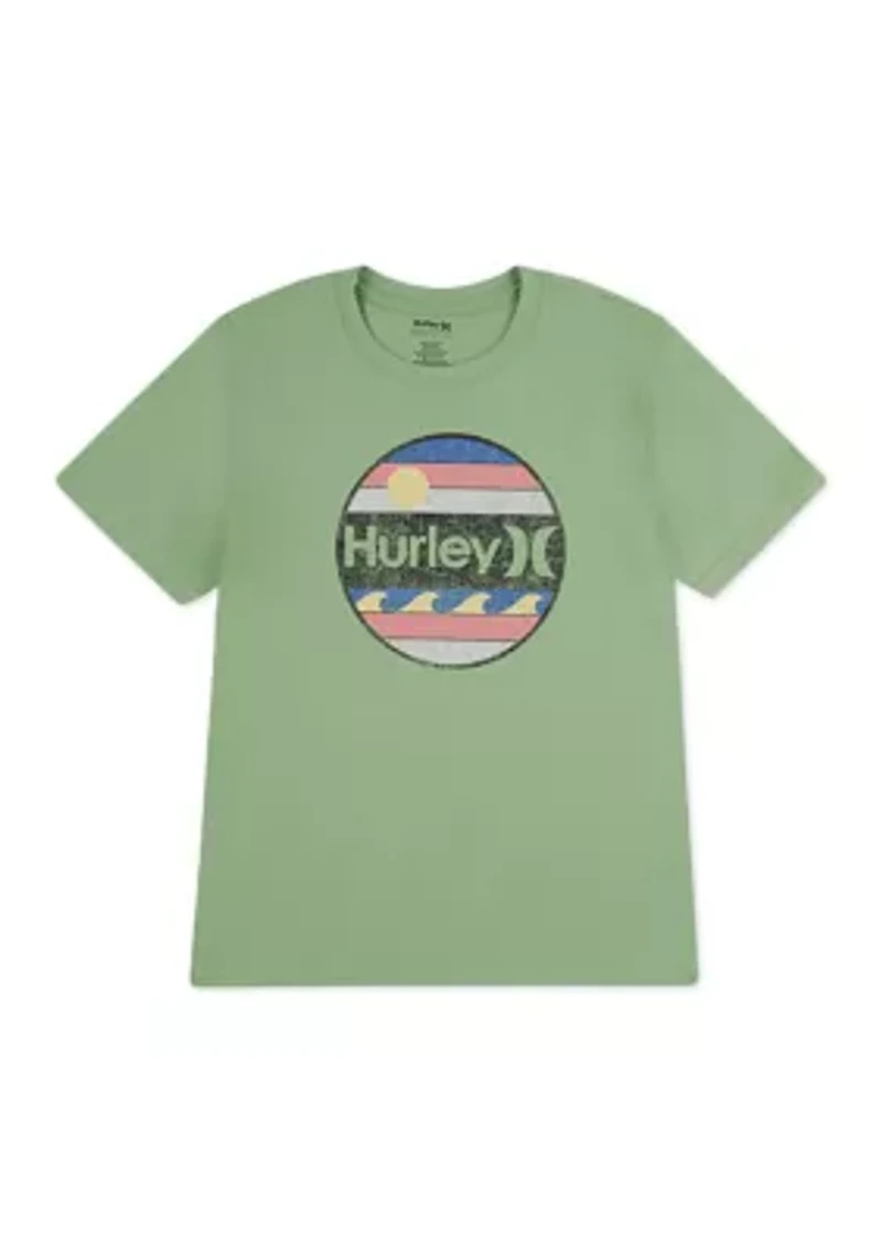 This Hurley top is perfect for active boys. Featuring a classic crew neck and short sleeves, it's designed for easy wear with a convenient pullover closure. Pullover Crew neck Short sleeves Imported Material & Care Cotton, polyester Machine washable