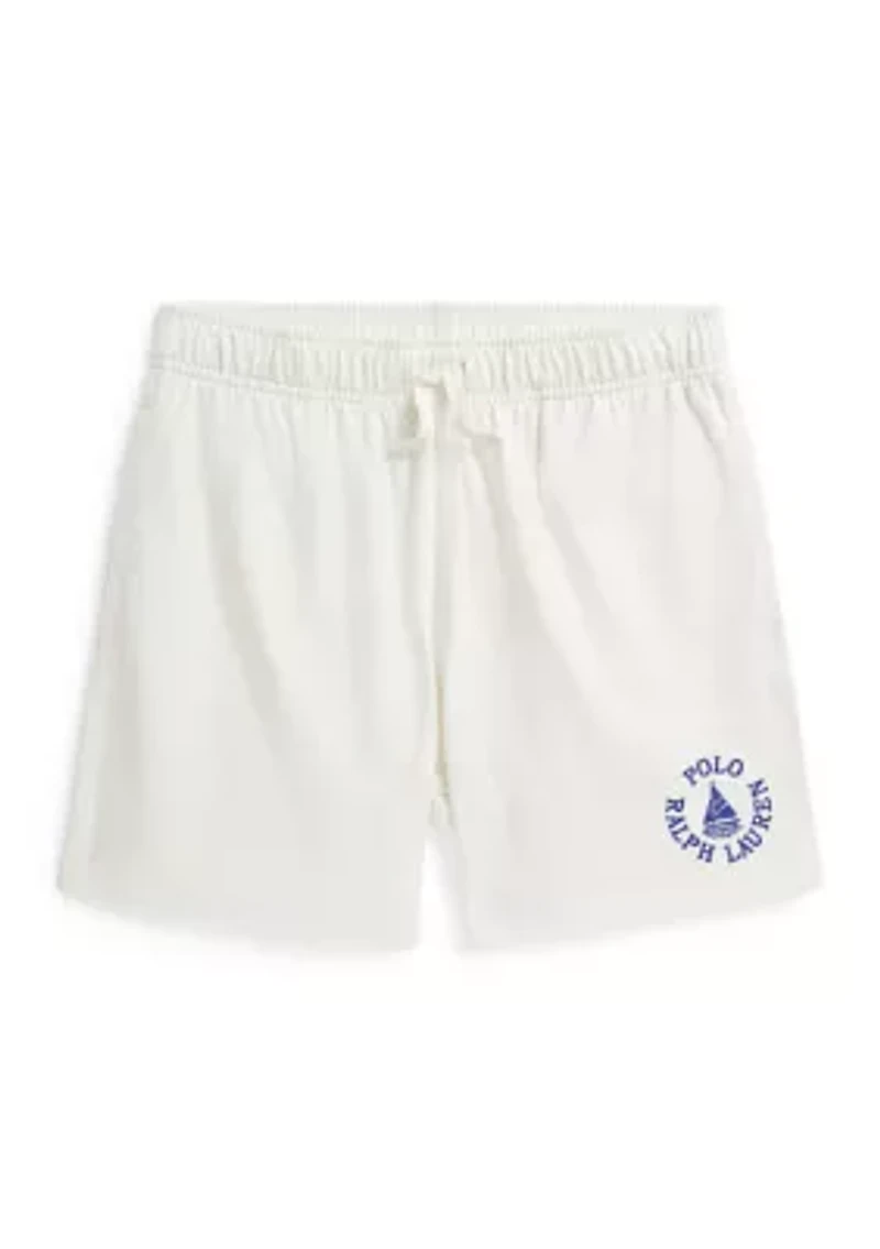 These Ralph Lauren Childrenswear shorts are made with soft cotton jersey and then washed for even greater comfort. Along with the signature Pony, they feature a “Polo Ralph Lauren” logo embroidered with a sailboat. Drawstring with elastic waistband Signature embroidered Pony at the back pocket Side on-seam pockets, back right patch pocket Imported Product Specifications Size medium has a 10.25" rise and a 4.75" inseam Material & Care 100% cotton Machine washable