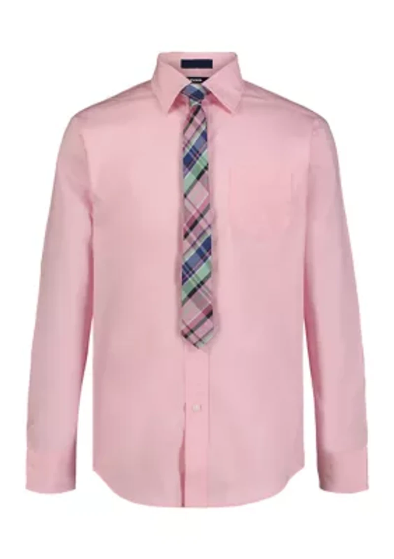 Boys 8-20 Long Sleeve Stretch Solid Poplin Shirt & Tie