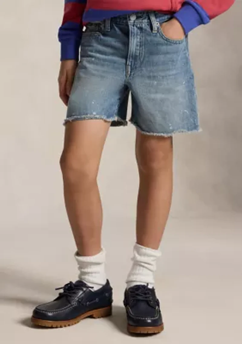 These shorts are made with indigo-dyed cotton denim that’s woven using ring-spun yarns for tried-and-true quality. A paint-splatter print and cutoff hems add a playful Polo finish. 100% cotton. Machine washable. Relaxed Fit. Size 12 has an 8.75" rise and a 5" inseam. Belt loops. Zip fly with a buttoned closure. Button custom-developed with a “Polo Ralph Lauren” logo. Size 8–12: adjustable buttoned tabs at the interior ensure a room-to-grow waist. Five-pocket styling with metal rivets. Rivets custom-developed with a “PRL 67” logo. “Polo” logo at the coin pocket. Faux suede “Polo Ralph Lauren” patch at the back right waist. Cutoff hems. Imported. Coloring may rub off onto fabrics and upholstery. Imported
