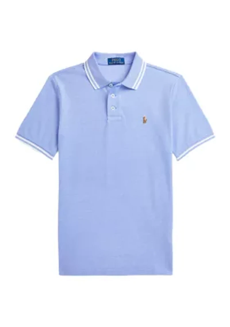 This Ralph Lauren Childrenswear polo shirt’s cotton mesh fabric features a heathered appearance similar to their signature Oxford cloth. 100% cotton Machine washable Size medium has a 24" body length (front and back) Multicolored signature embroidered Pony at the left chest Ribbed Polo collar with striped tipping Three-button placket Short sleeves Ribbed armbands with striped tipping Even vented hem Imported Imported