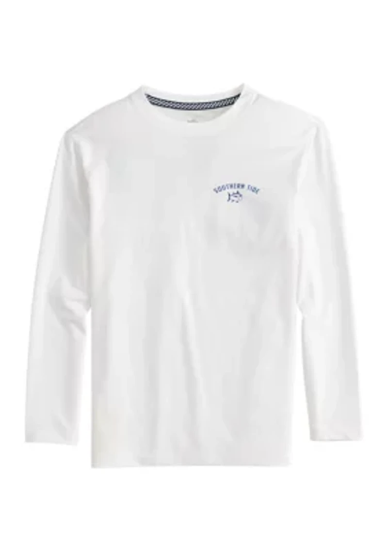 Southern Tide's performance t-shirt is designed for active boys. Crafted from a blend of fabrics, it offers exceptional moisture-wicking properties to keep him cool and dry during intense activities. The fabric's inherent stretch ensures unrestricted movement, while the long sleeves provide ample coverage. Designed with a classic crew neck and long sleeves, this t-shirt is comfortable to wear all day. Pullover Crew neck Long sleeves Imported Material & Care Polyester, spandex Machine washable