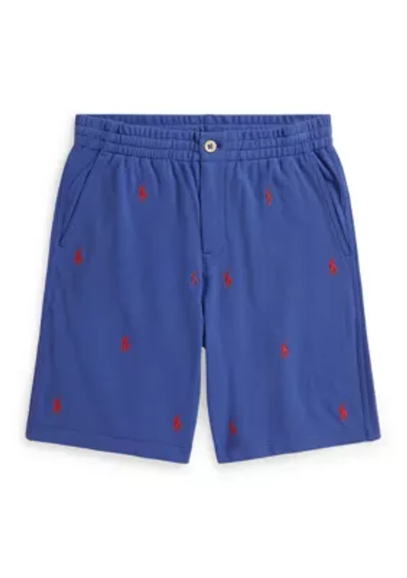 These Ralph Lauren Childrenswear shorts are made with the signature mesh fabric and embroidered with a colorful motif of the iconic Pony. Imported Product Specifications Size medium has a 9.5" rise and a 7" inseam. Signature Pony embroidered all over Material & Care 100% cotton Machine washable