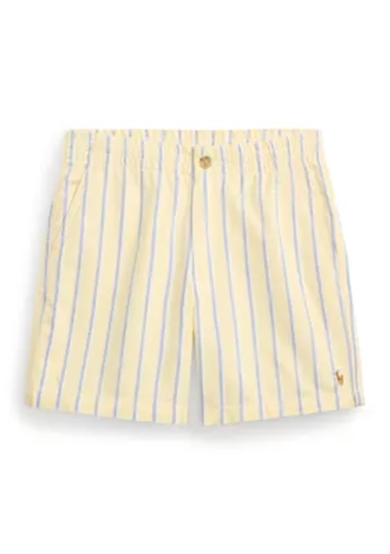 Made with lightweight cotton Oxford, these Ralph Lauren Childrenswear Polo Prepster shorts feature yarn-dyed stripes and are embroidered with their iconic multicolored Pony. 100% cotton Machine washable Size medium has a 9.5" rise and a 5" inseam Multicolored signature embroidered Pony at the left hem Elastic waistband with an interior drawstring Zip fly with a buttoned closure Two front angled pockets Two back buttoned pockets Imported Coloring may rub into fabrics and upholstery Imported
