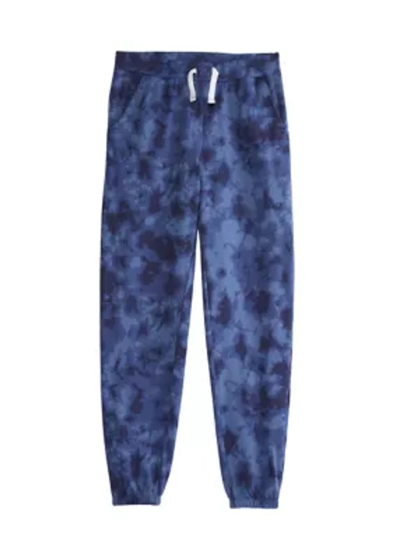 Fashioned in fleece, these pull-on joggers from blended feature trendy tie-dye that he'll love to wear from the playground to practice. Drawstring elastic waistband 2 slant pockets Comfort fit Straight leg Imported Material & Care Cotton, polyester Machine washable